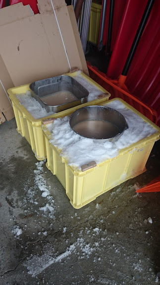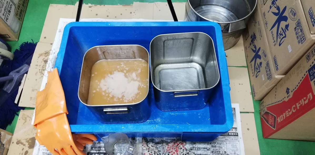 4.大きなゴミが取り除けたら寸胴の容器に入れて冷蔵庫か気温の低い場所で一晩置きます。