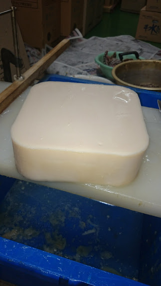 1.捕獲した熊の身体から脂肪だけを取り出して、その脂肪を5cm角程度に切り分けます。